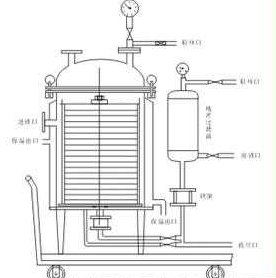 濾芯式過濾器結構:SHK型過濾機由筒體、過濾液板、視鏡、雙向壓緊裝置、循環管路系統。開啟進料閥,過濾開始,濾液即被輸送到指定的貯罐內。 濾芯式過濾器工作原理:料漿經泵輸送進濾器內,上部排空閥顯示料漿充滿濾器后,停止進料。打開循環管路系統,使料漿在濾器本體進行循環過濾,監視視鏡,當肉眼觀察符合質量要求時,關閉循環管路系統,開啟進行閥,過濾開始,濾液即被輸送到指定的貯罐內。不銹鋼粉末活性碳過濾機分為兩種:1型、2型。1型為加熱保溫過濾。2型為普通。 濾芯式過濾器產品特點:雙向壓緊結構,杜絕了泄漏現象。生產效率高,濾液澄清度高。獨特的循環系統,縮補了過濾周期。滿足制藥行業GMP規范的要求。勞動強度低,占地面積小。可使用濾布、濾紙、濾膜、燒結金屬氈等作為過濾介質。 濾芯式過濾器技術參數: